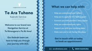 For more information on Te Ara Tūhono click here. Te Ara Tūhono – help navigating ACC